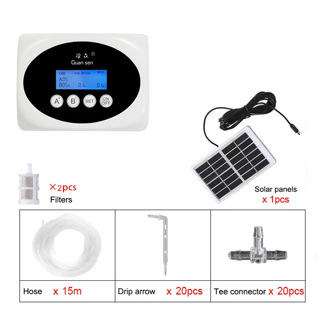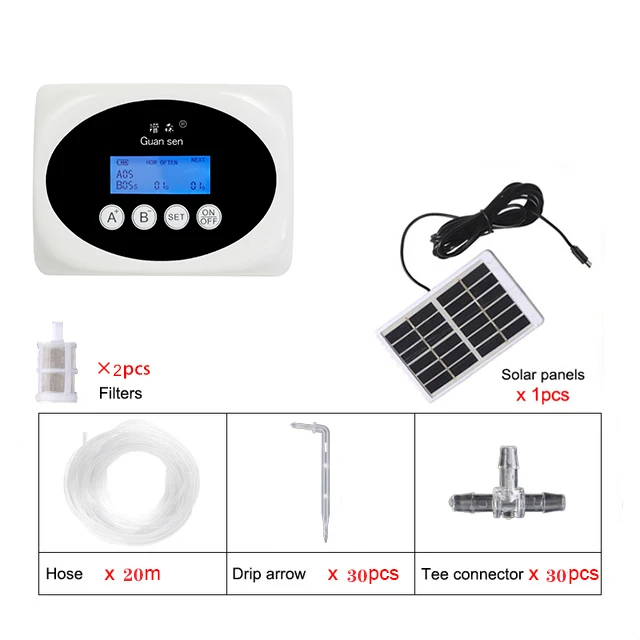Découvrez notre système d’irrigation solaire goutte à goutte. Il vous permet d’arroser vos plantes en autonomie grâce à sa minuterie et son panneau solaire. En installant notre kit d’arrosage automatique, vous ferez des économies sur l’eau et l’électricité, vos plantes vous remercieront et la planète aussi. Existe en trois tailles de longueur de tuyau différents.
