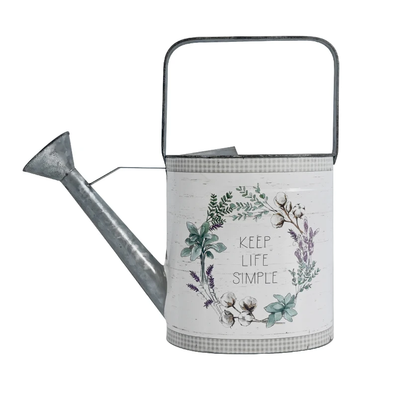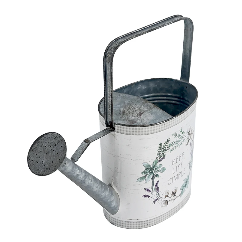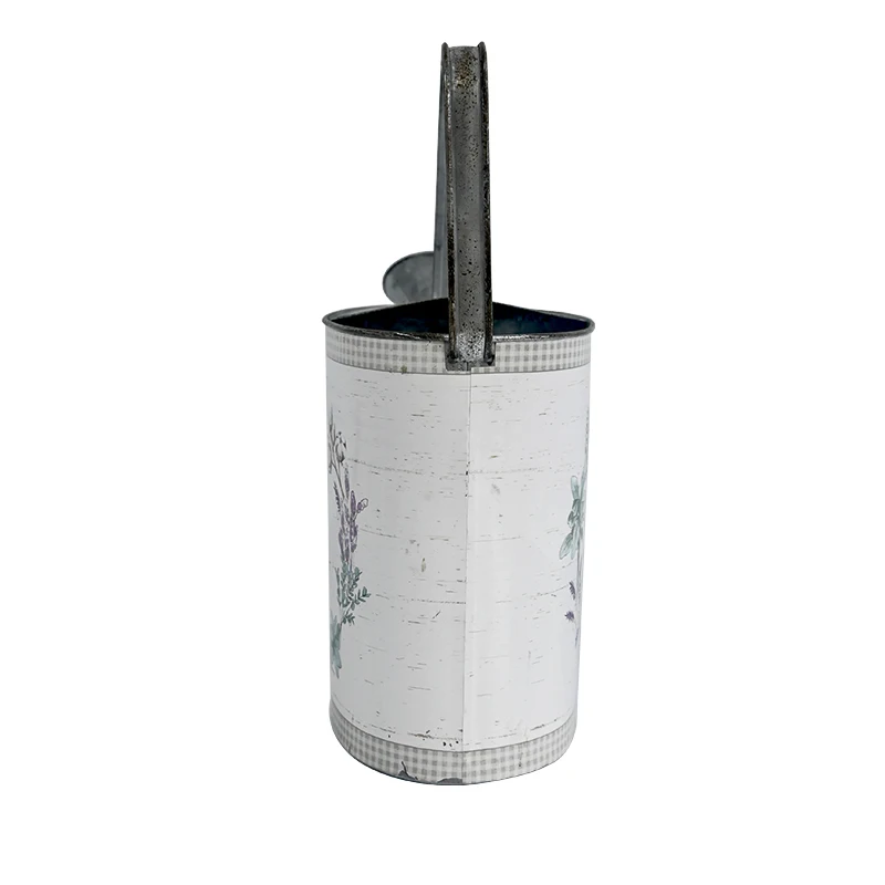 Arrosoir décoratif en zinc et motifs fleurs style campagnard