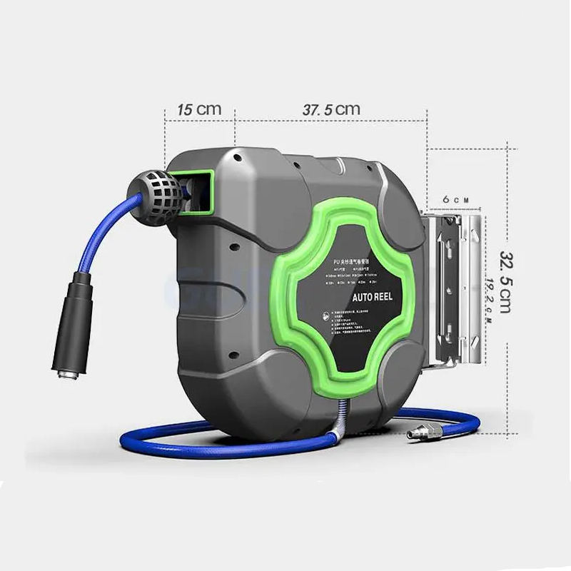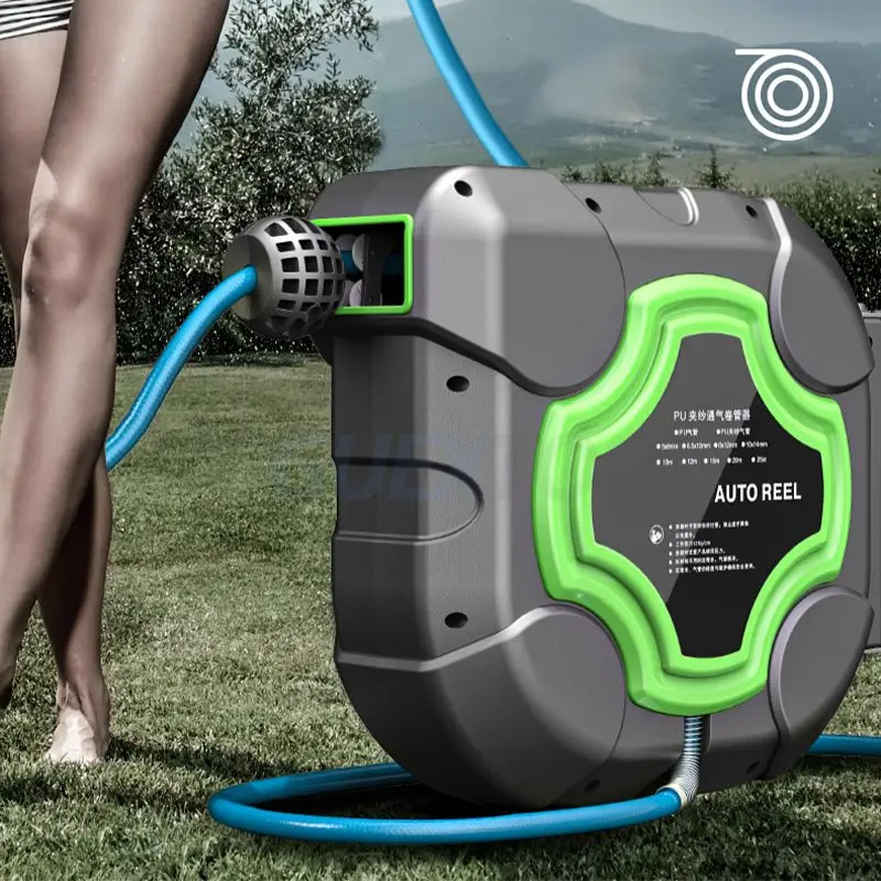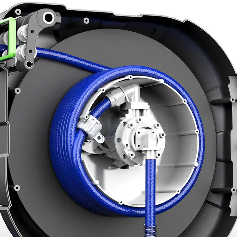 Grâce à son système d'enroulement automatique, vous pourrez enrouler et dérouler votre tuyau en toute simplicité, sans risque de nœuds ou de plis. Notre enrouleur de tuyaux d'arrosage automatique est également équipé d'un joint d'arrêt et d'une protection pour le tuyau afin que celui-ci ne s'abime pas et ne s'use pas lorsqu'il s'enroule à l'intérieur.