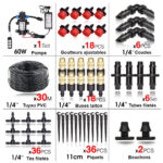 Ce kit d'arrosage automatique en 60W permet de multiples combinaisons pour arroser tous les types de plantes, fruits, fleurs, arbres. La pompe est équipée d'un filtre et les diamètres d'entrée et sortie sont standard. Avec ce système, le débit d'eau reste constant, la pression efficace est uniforme et l'arrosage devient facile, adaptable à chaque plante ou chaque type de plante.
