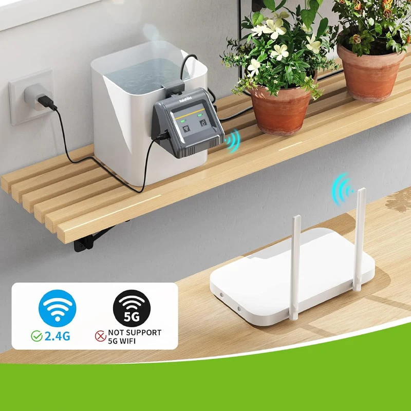 Ce kit d'arrosage automatique irrigation wifi fonctionne sur les appareils jusqu'à 4G, mais pas sur la 5 G, veuillez en prendre note. Le kit permet d'irriguer correctement jusqu'à 10 pots de plantes ou fleurs, sur le même plan ou non. Vous avez le choix entre le mode manuel ou automatique : sur l'automatique, programmez la fréquence de l'irrigation en heure ou en jours, jusqu'à 7, et le temps d'irrigation en secondes ou minutes, jusqu'à 30 minutes.