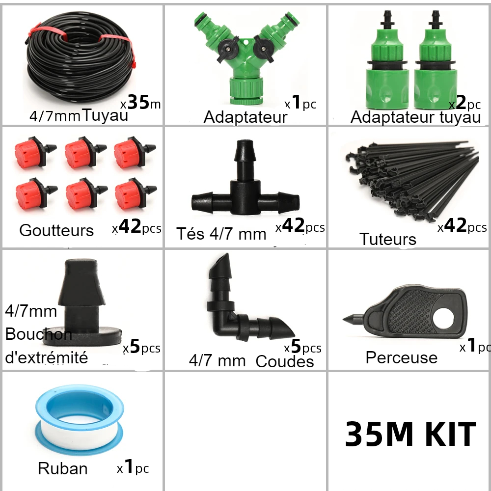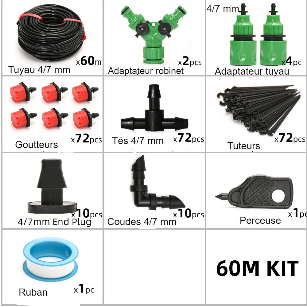 Kit d’arrosage goutte-à-goutte 35 m à 60 m