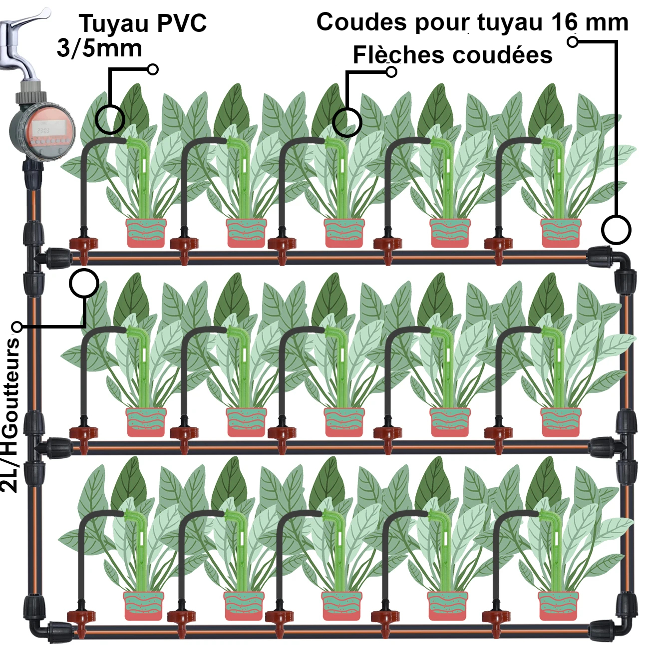 Kit d’arrosage goutte-à-goutte flèche coudée