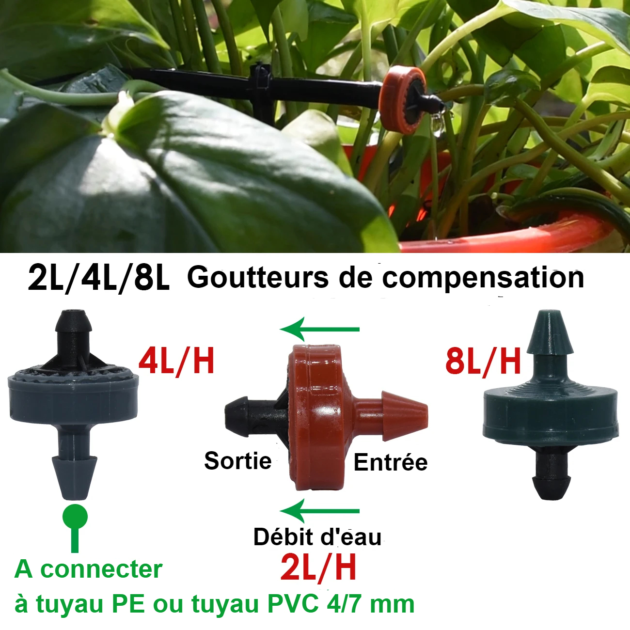 Ce kit d’arrosage goutte-à-goutte flèche coudée est proposé en trois kits différents à choisir selon la quantité d’eau délivrée par heure : 2 litres, 4 litres ou 8 litres. Ainsi, vous choisirez le kit qui conviendra le mieux aux besoins de vos plantations. Ce kit est simple à mettre en place et à utiliser.