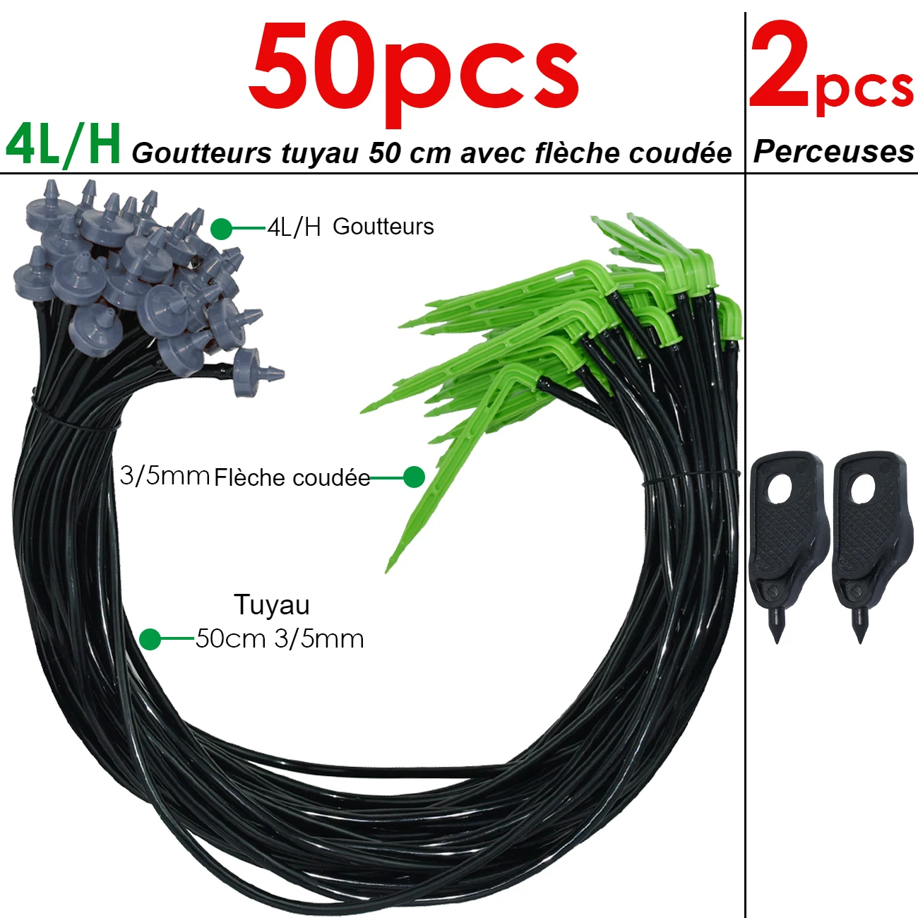 Tuyau, flèches, goutteurs : 3/5 mm