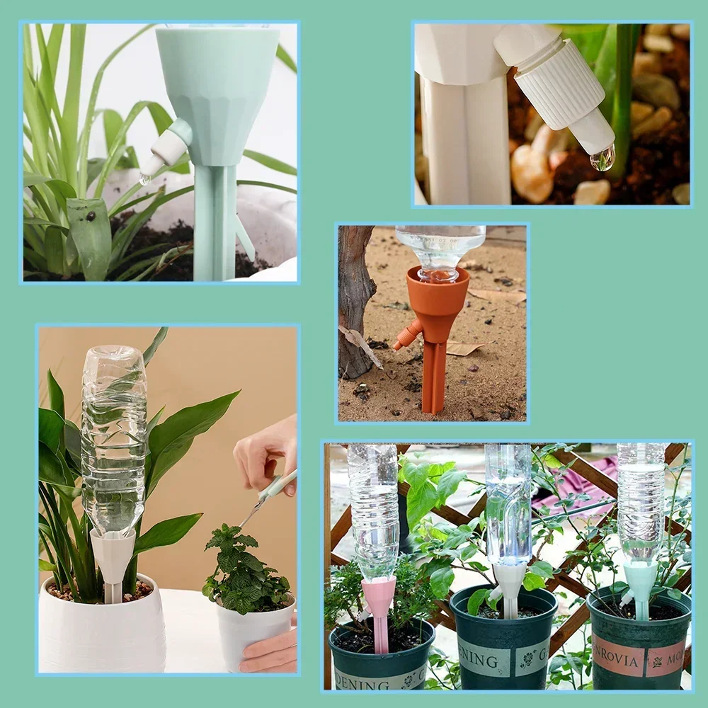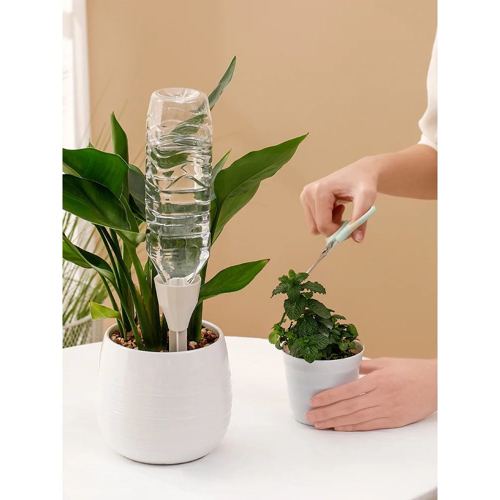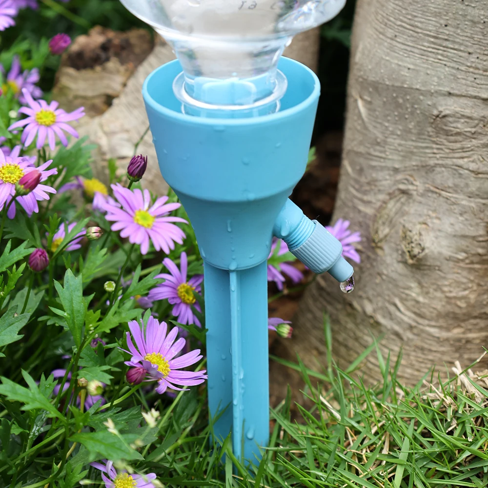 Ce kit d'arrosage goutte-à-goutte réglable 3 pièces est un outil d'irrigation d'une simplicité extrême : il suffit d'insérer une bouteille d'eau tête en bas dans la collerette, la plupart des bouteilles plastique sur le marché conviennent, de régler la mollette de débit et de planter votre piquet à l'endroit voulu près de la plante ou fleur, en pot ou en pleine terre. Voilà, c'est prêt!