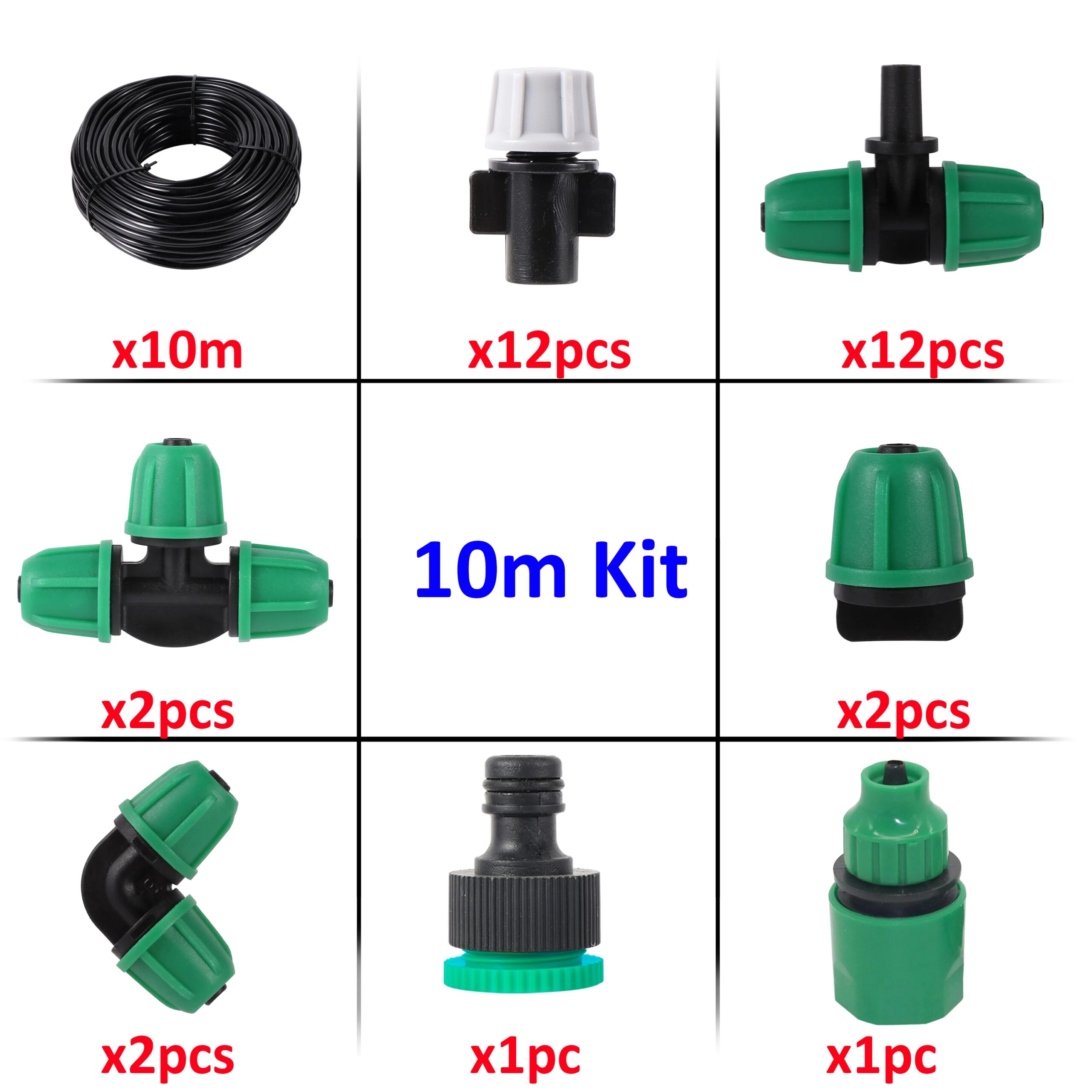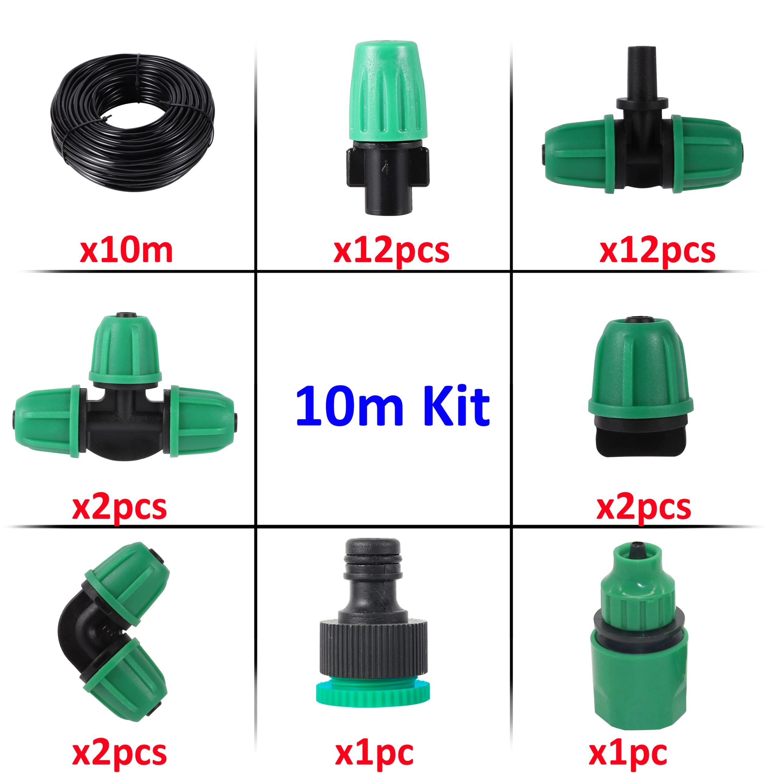 Ce kit de brumisation 10 mรจtres ensemble de buses est proposรฉ en quatre variantes : le modรจle 1, le plus basique, est dรฉjร trรจs intรฉressant. Le modรจle 2 apporte une diffรฉrence de verrouillage des 12 piรจces en T et du bouchon d'extrรฉmitรฉ : le verrouillage est amรฉliorรฉ. Pour le kit 3 les amรฉliorations du 2 subsistent et le filetage du connecteur de mamelon apparaรฎt avec le changement de la couleur en bleu. Le modรจle 4 est le plus complet niveau amรฉlioration de verrouillage de couleur verte.