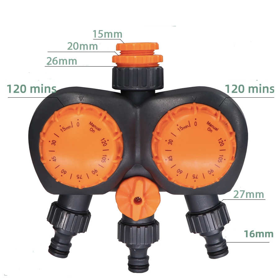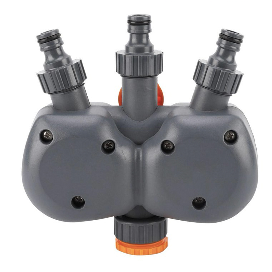 Avec diffรฉrents diamรจtres sur la tรชte femelle de notre minuteur d'arrosage, grรขce a boulons amovibles, il sera trรจs facile de l'installer sur votre sortie d'eau qu'elle quelle soit. Les trois tรชtes sortantes possรจdent aussi des connecteurs amovibles pour avoir le choix entre deux diamรจtres et ainsi placer facilement votre ou vos tuyaux.
