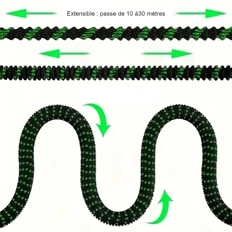 Ne soyez pas surpris : lorsque vous déballerez votre tuyau d'arrosage extensible, il ne fera que dix mètres, et pour cause : ce type de modèle extensible triple de taille grâce à la pression de l'eau. Une fois débranché du robinet, il reviendra à sa taille initiale de 10 mètres et se ranger facilement !